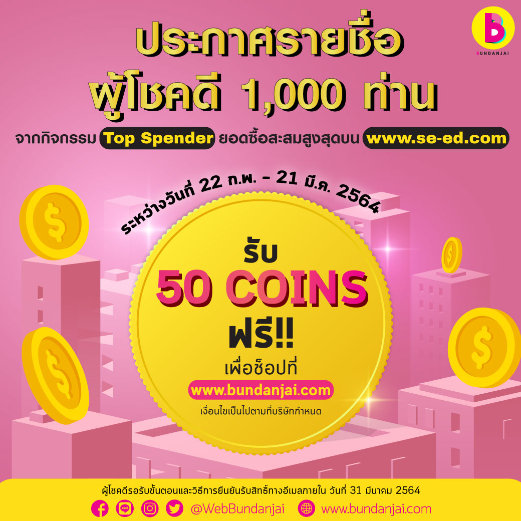 - รับ 50 COIN ฟรี เพื่อช็อปที่ www.bundanjai.com