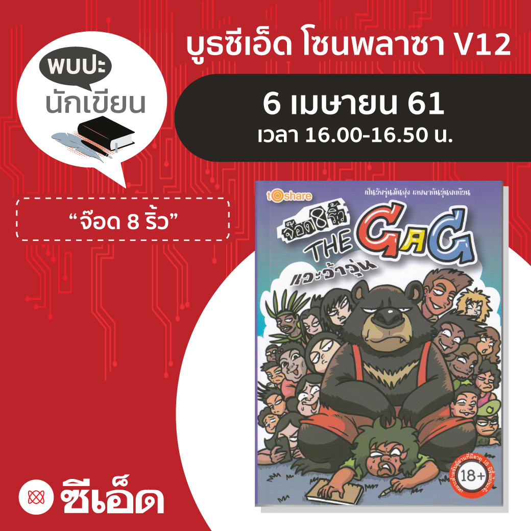 เชิญมาพบปะ กับนักเขียนคุณภาพคับแก้ว กว่า 20 ชีวิต ที่บูธซีเอ็ด Zone Plaza V12 ได้ที่งานสัปดาห์หนังสือ ครั้งที่ 46 ตั้งแต่ระหว่างวันที่ 29 มีนาคม ถึง 8 เมษายน พ.ศ. 2561