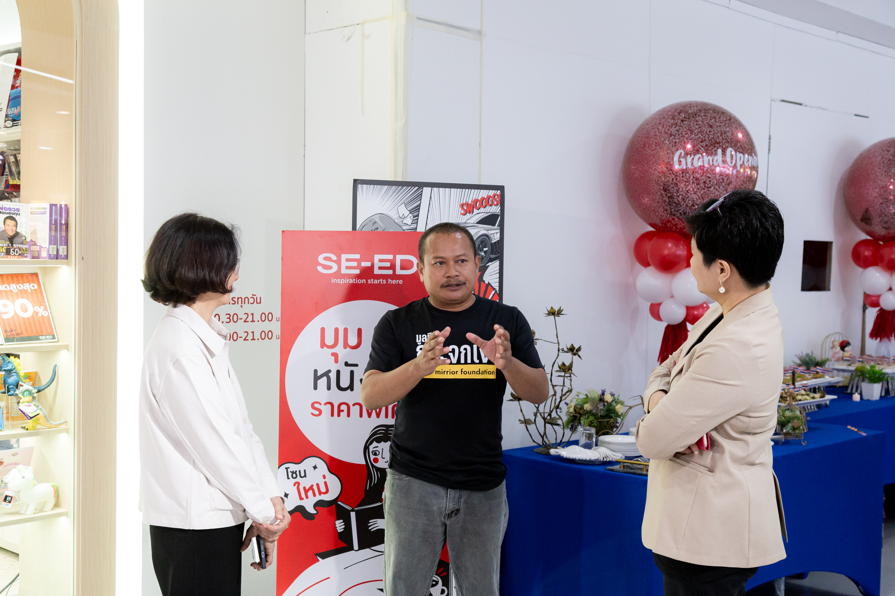 ในโอกาสเฉลิมฉลองการเปิดสาขาใหม่นี้ ซีเอ็ด ร่วมกับ ไอแอมเดอะเบสท์, ซุปเปอร์โพซิชั่น, เพอลังอิ พับลิชชิ่ง (ประเทศไทย), อมรินทร์ บุ๊คเซ็นเตอร์, ไอดีซี พรีเมียร์, นานมีบุ๊คส์, ซากุระโปรดัคส์ (ไทยแลนด์) และ วี.อาร์.ทอยส์ ร่วมมอบหนังสือและสื่อการเรียนรู้ให้แก่ “มูลนิธิกระจกเงา” มูลค่ารวม 500,000 บาท โดยได้รับเกียรติจาก นายจรัญ มาลัยกุล หัวหน้าโครงการอ่านสร้างชาติ มูลนิธิกระจกเงา เป็นผู้รับมอบ เพื่อนำไปใช้ในโครงการปรับปรุงห้องสมุดโรงเรียน (ขนาดกลาง-เล็ก) จำนวน 15 แห่งในจังหวัดเชียงราย และจังหวัดอุบลราชธานี ช่วยให้เด็กๆ ได้เข้าถึงความรู้และพัฒนาตนเองผ่านการอ่านมากขึ้น