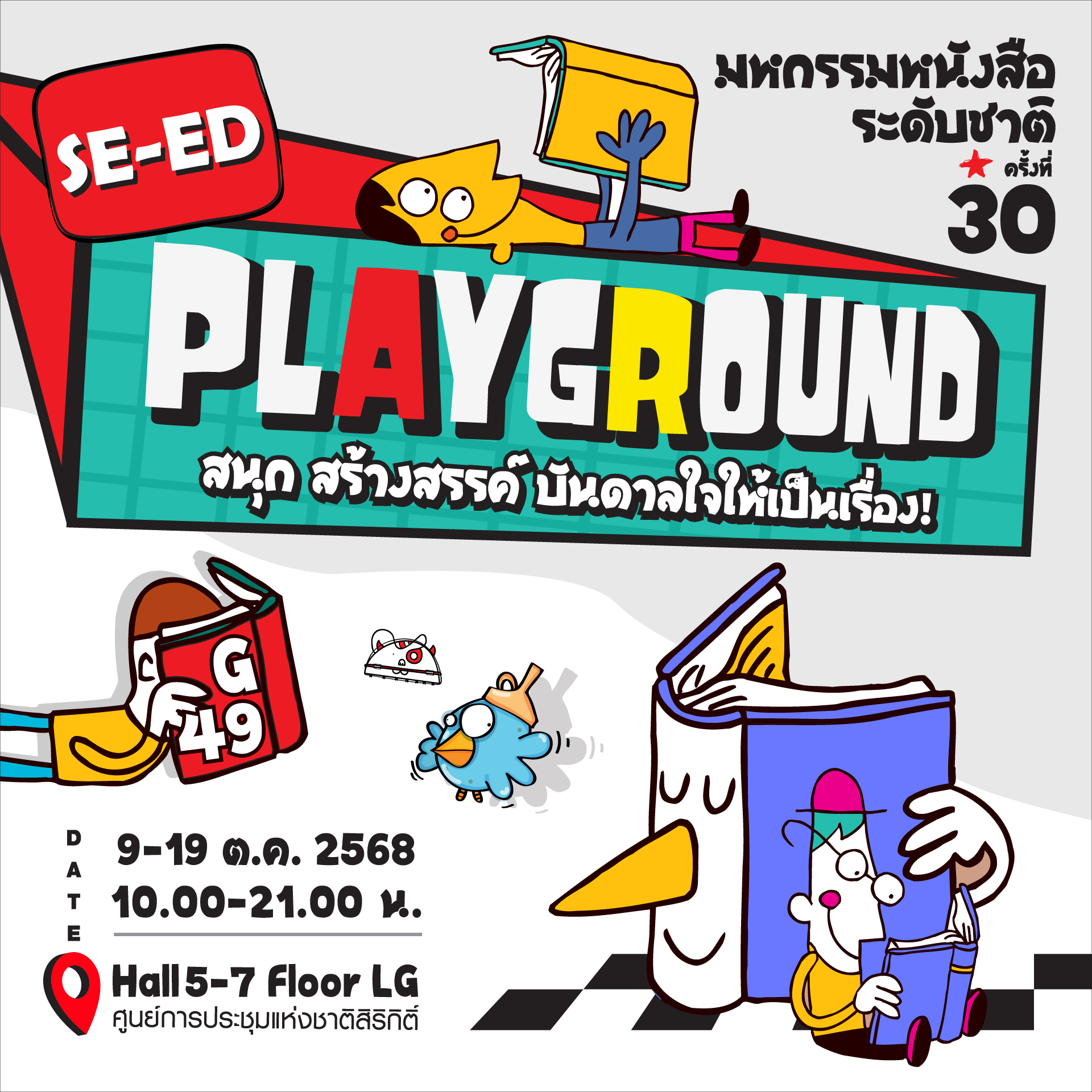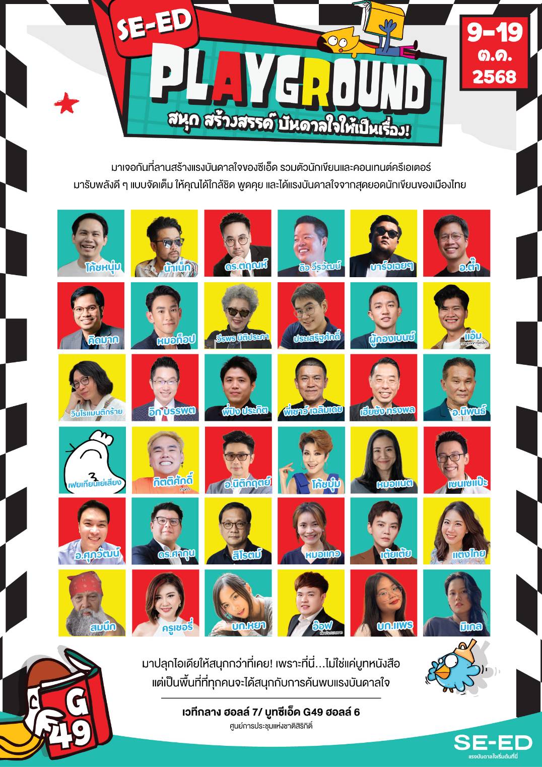 ซีเอ็ดเชิญชวนคนรักหนังสือและผู้แสวงหาแรงบันดาลใจ ร่วมสัมผัสประสบการณ์ใหม่ใน “SE-ED PLAYGROUND” — พื้นที่สร้างสรรค์ไอเดียและแรงบันดาลใจ ในงานมหกรรมหนังสือแห่งชาติ ครั้งที่ 30 ระหว่างวันที่ 9–19 ตุลาคม 2568 เวลา 10.00–21.00 น. บูทซีเอ็ด G49 ชั้น LG ศูนย์การประชุมแห่งชาติสิริกิติ์