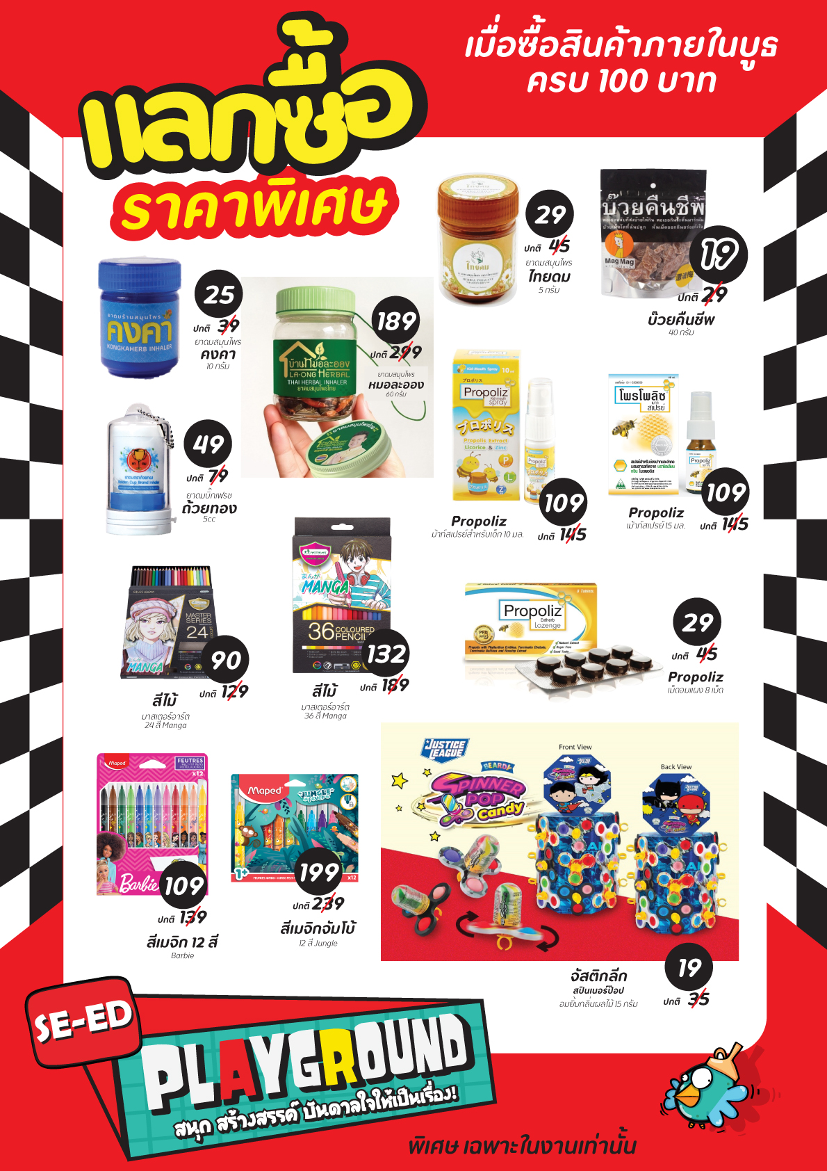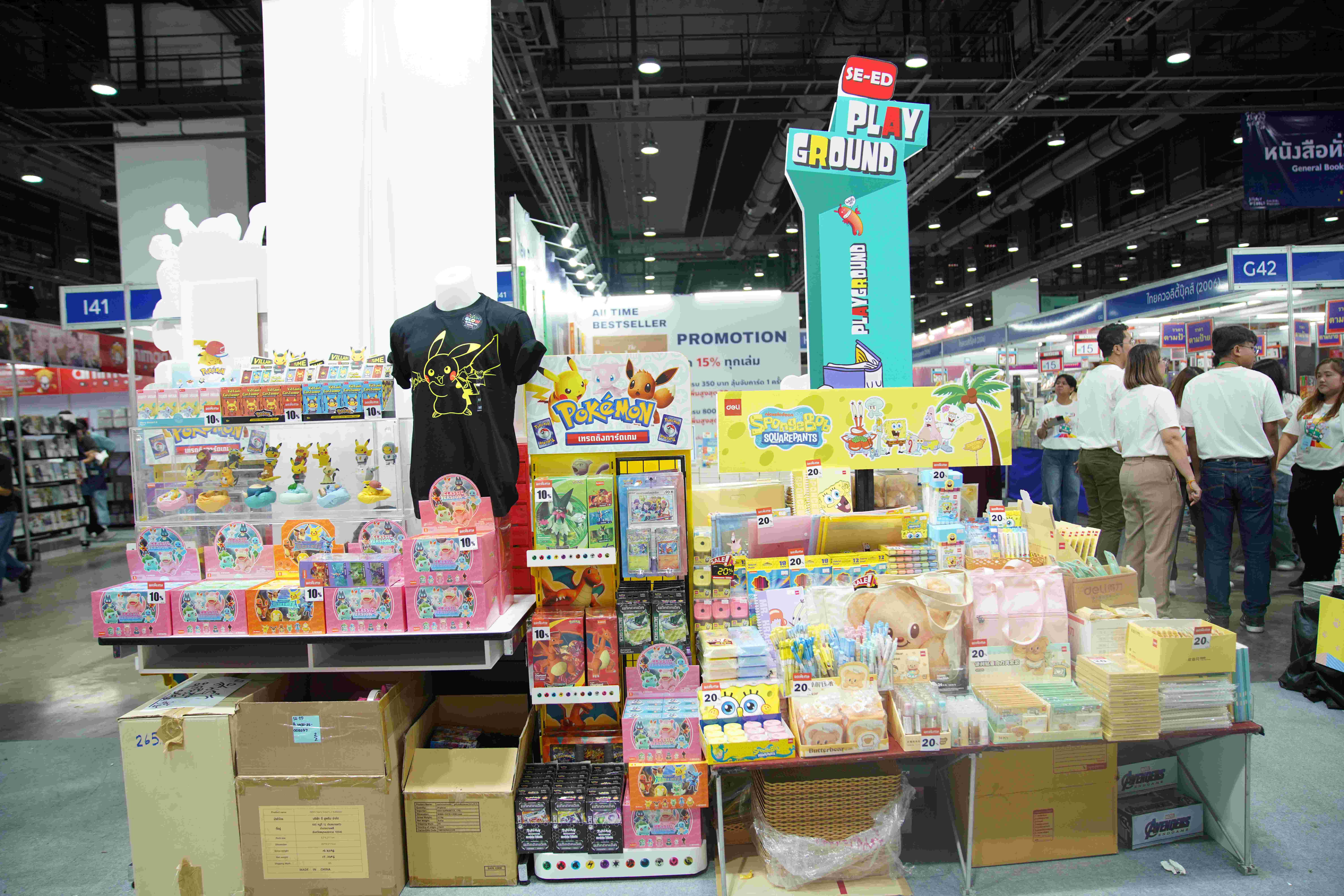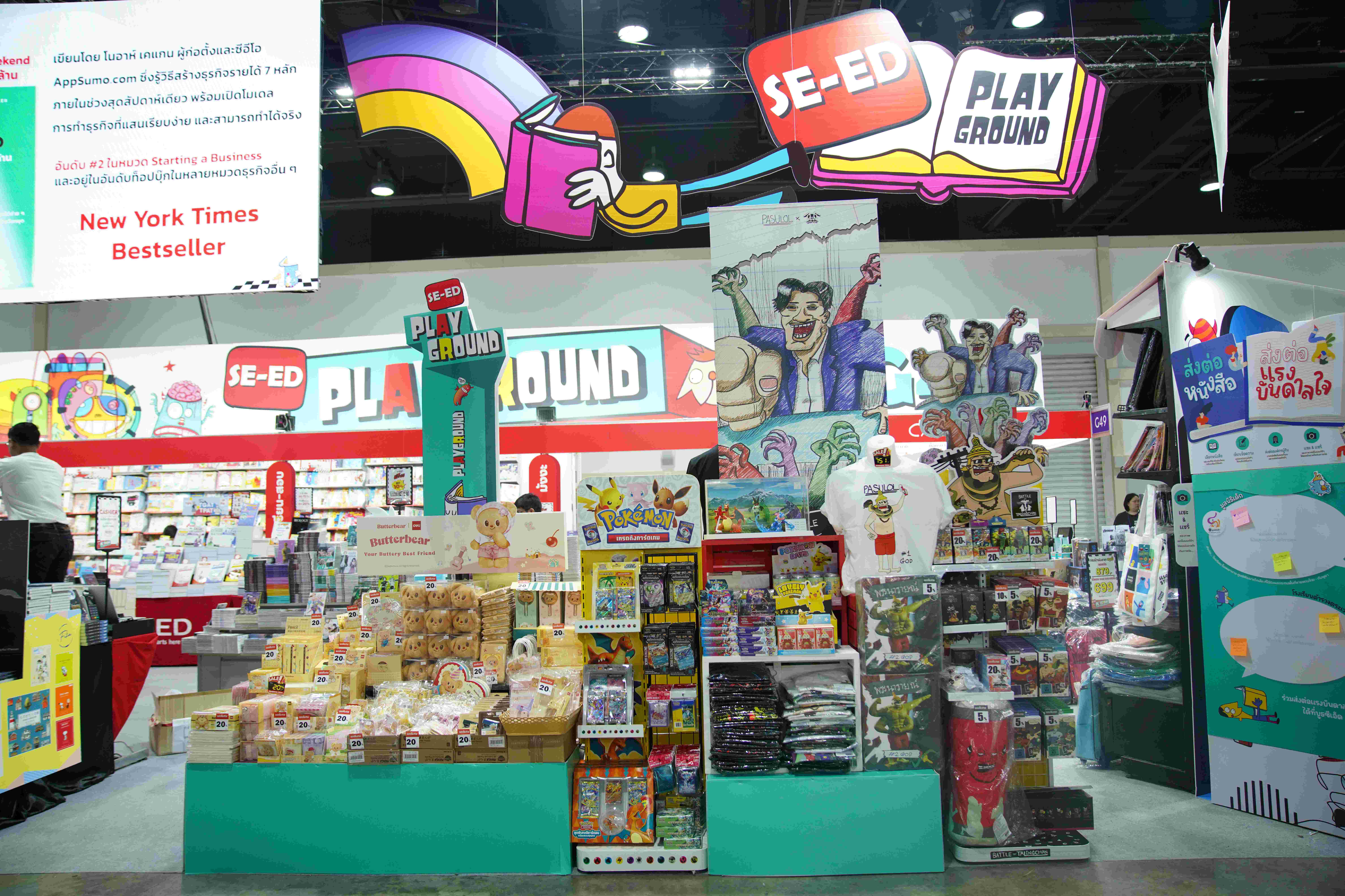 ภายในพื้นที่ SE-ED PLAYGROUND ยังมีโซน “ไอเทมไฮไลท์ ไอเทมสุดปั่น” ที่สะท้อนคอนเซ็ปต์ “Playground” ได้อย่างเต็มที่ ผ่านคอลเลกชันสินค้าลิขสิทธิ์แท้จากคาแรกเตอร์ดังระดับโลก ไม่ว่าจะเป็น Pokémon / Pokémon Trading Card Game, Marvel, Mickey Mouse, Sesame Street, Peanuts Snoopy, Stitch, SpongeBob, Care Bear, Minions, Naruto, หมีเนย และ Battle of Talingchan (การ์ดพี่หน่วง) พร้อมด้วยสินค้ากลุ่ม บอร์ดเกมการเงิน NetWorth และ Wishlist ที่ช่วยต่อยอดทั้งความสนุกและแรงบันดาลใจ