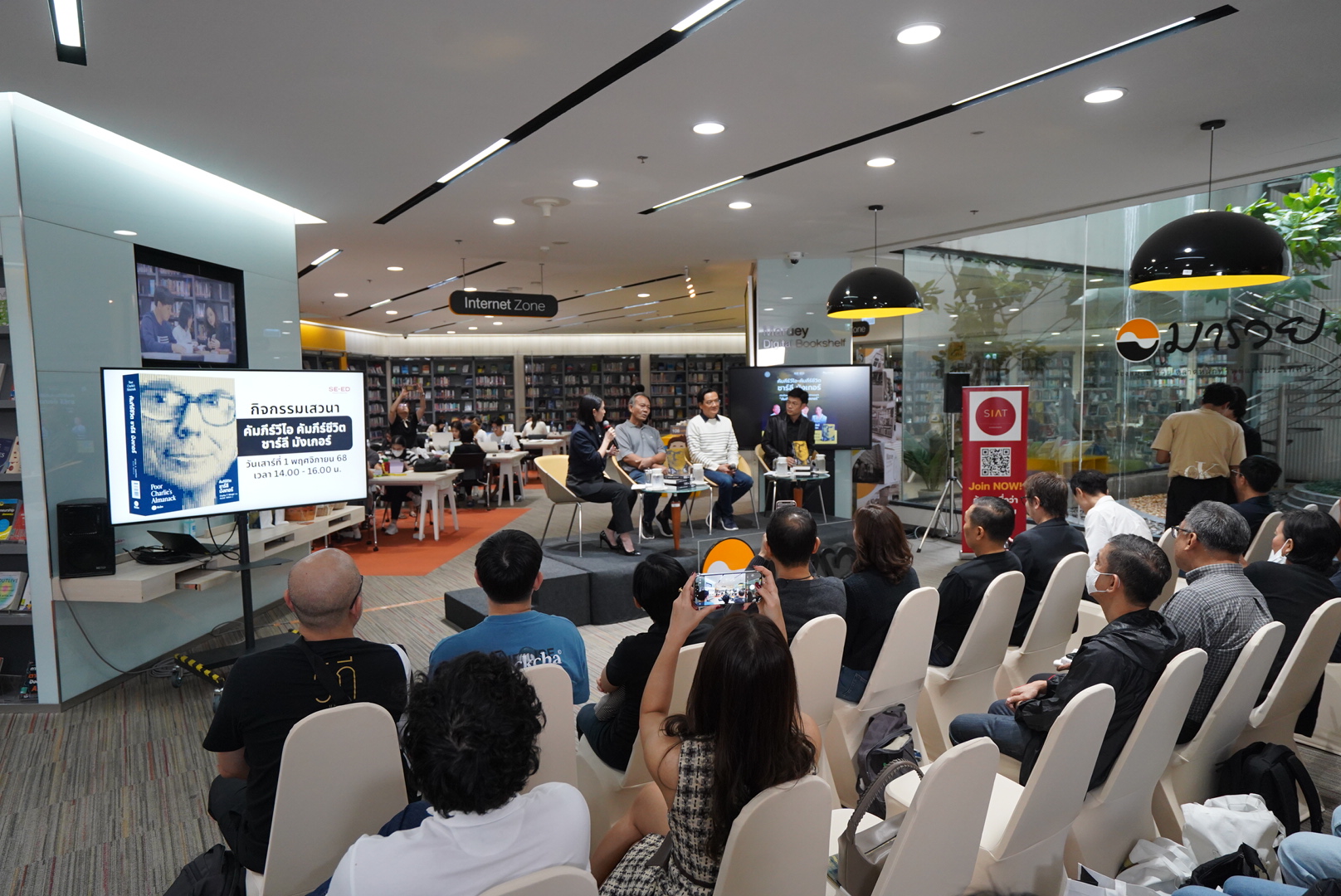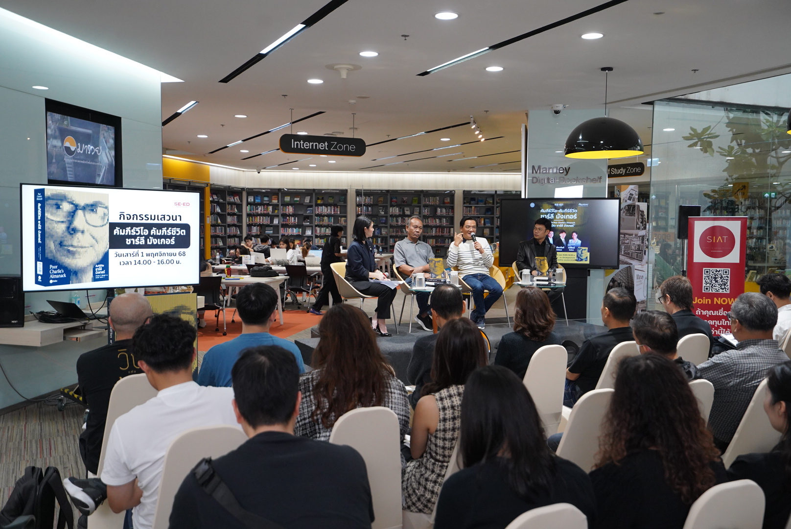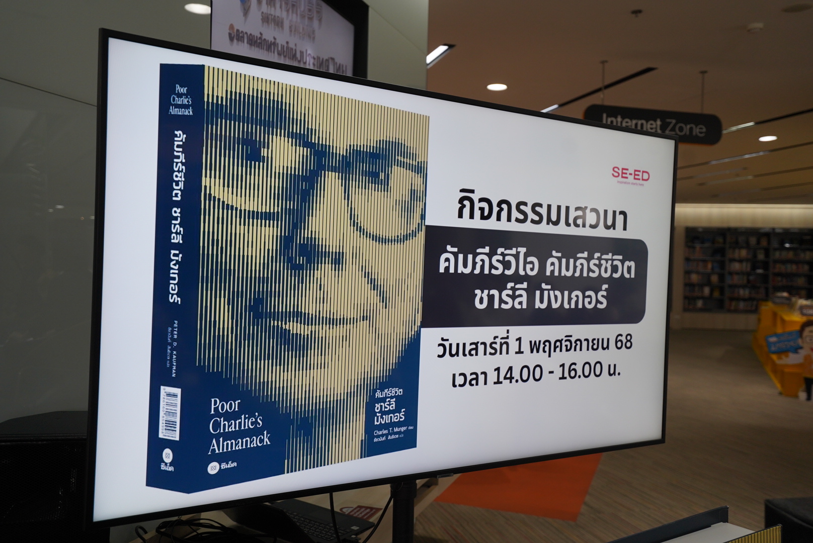 ซีเอ็ด ร่วมกับ ห้องสมุดมารวย ตลาดหลักทรัพย์แห่งประเทศไทย จัดกิจกรรม “Maruey Book Talk” เปิดตัวหนังสือ “Poor Charlie’s Almanack: คัมภีร์ชีวิต ชาร์ลี มังเกอร์” เมื่อวันที่ 1 พฤศจิกายน 2568 ณ ห้องสมุดมารวย เพื่อส่งเสริมการเรียนรู้ด้านการลงทุนและการพัฒนาตนเอง ผ่านแนวคิดและบทเรียนชีวิตจาก ชาร์ลี มังเกอร์ นักลงทุนระดับตำนาน ผู้เป็นแบบอย่างแห่งการคิดอย่างมีเหตุผลและการเรียนรู้อย่างต่อเนื่อง