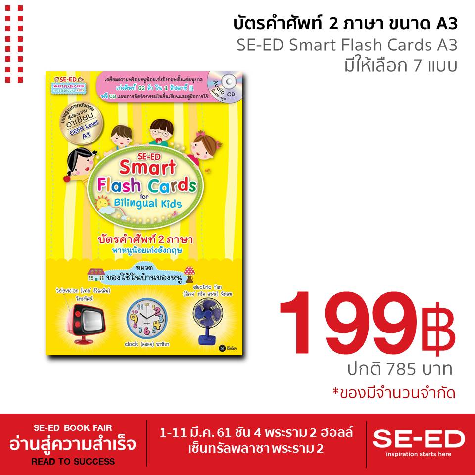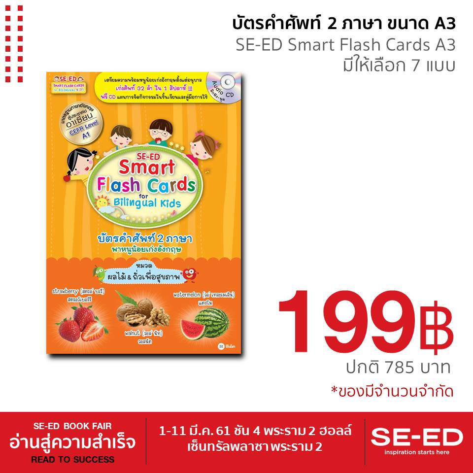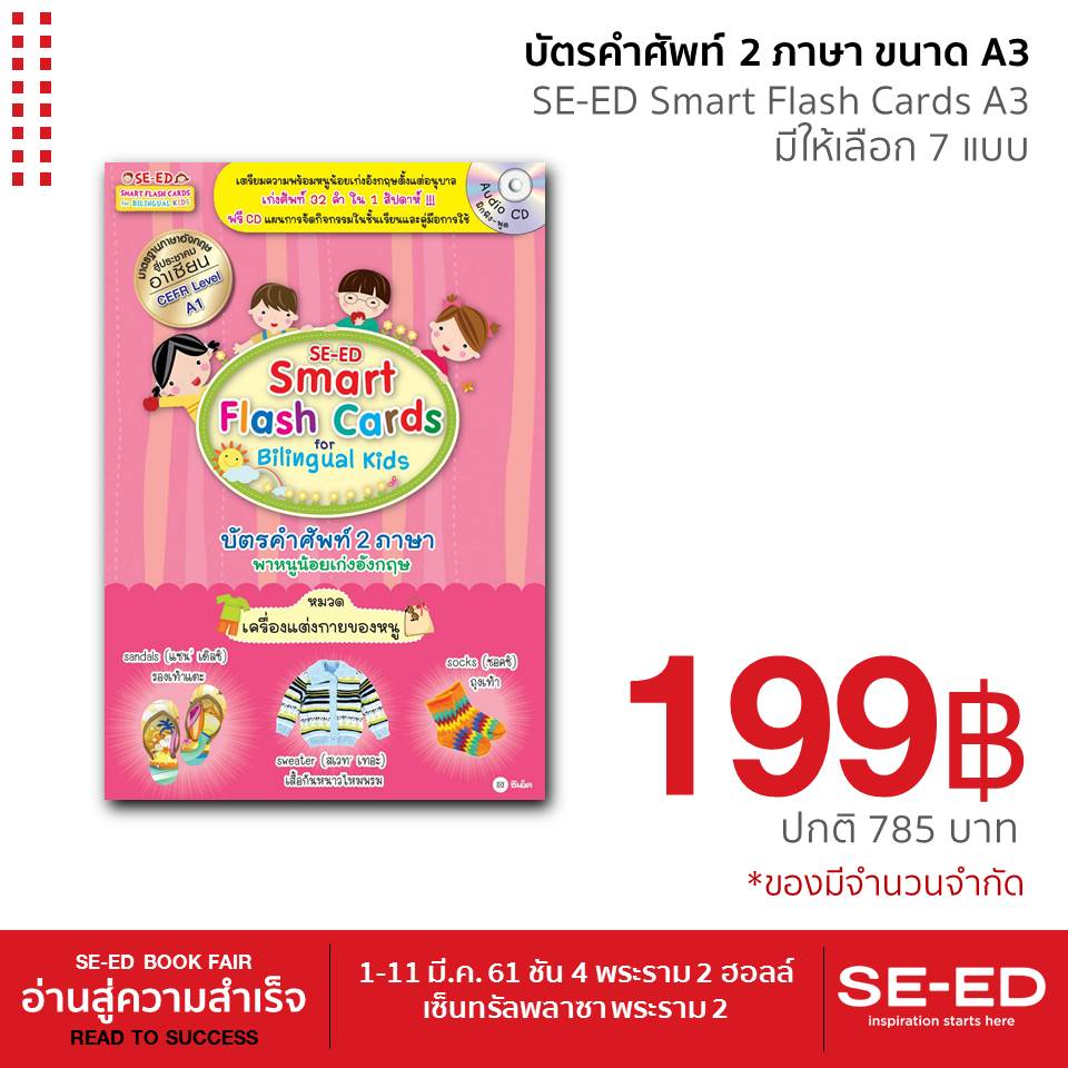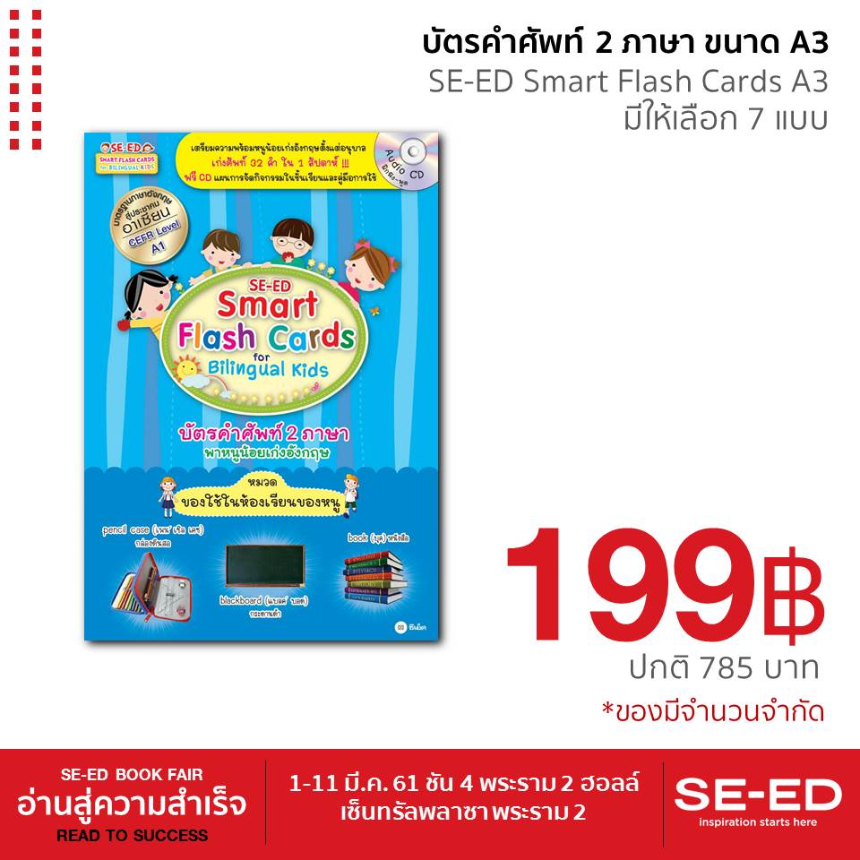SE-ED ได้จัดความคุ้มค่าที่มากับ โปรเต็มถุง 199 บาท อีกทั้งยังมีหนังสือขายดี มาจัดโปรให้ได้เลือกซื้ออย่างสนุกสนาน หรือจะเป็น SE-ED Smart Flashcard ขนาด A3 ที่มาพร้อมกับความคุ้มค่า ทั้งขนาด และราคา แถมมีมาให้เลือกมากถึง 7 หมวด 7 สี